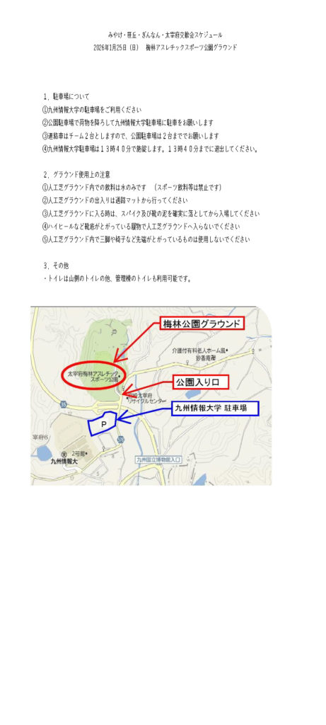 ※送迎を希望するメンバーは1/23(金)19:00までに事務局へご連絡ください。
