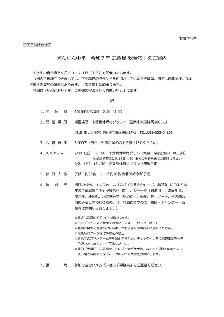 秋合宿を予定しております。